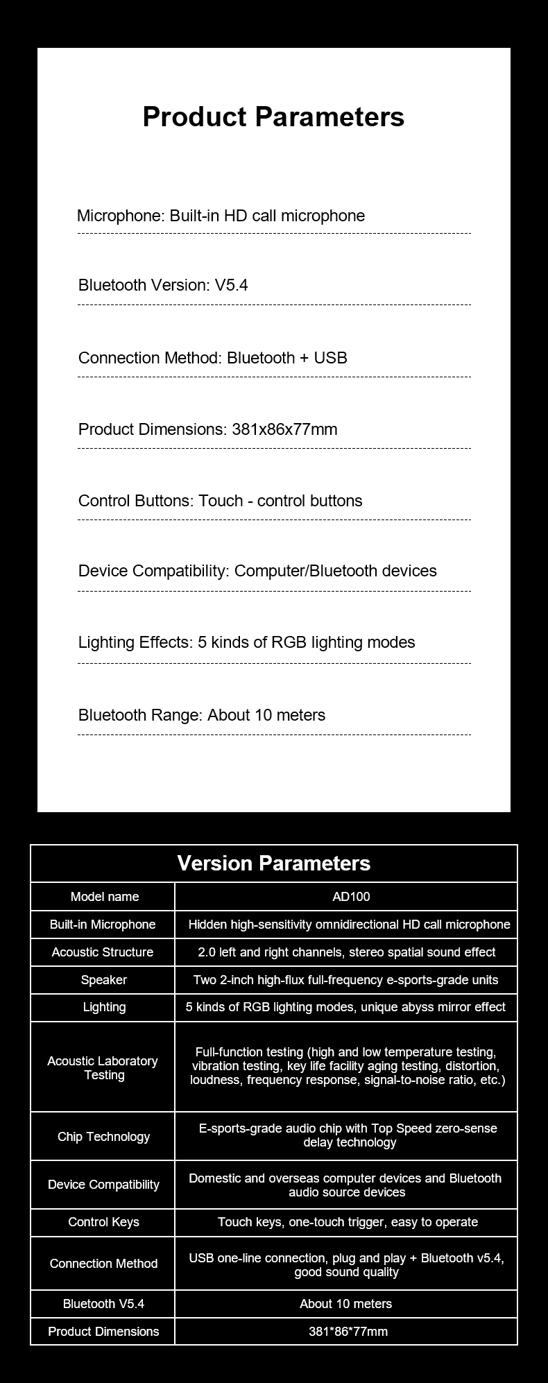 Wired gaming/office multilayer mirror desktop Soundbar AD100