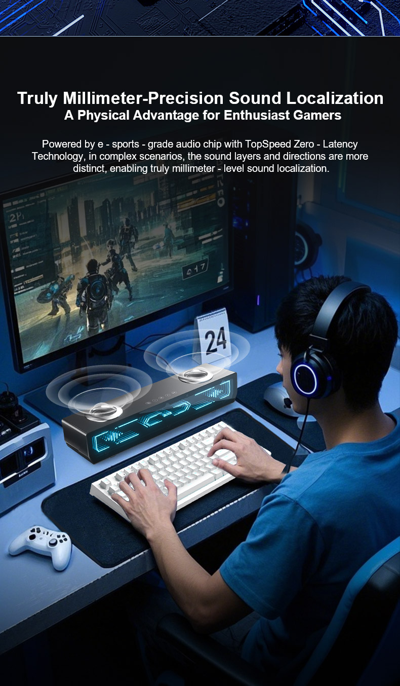 Gaming & Office Soundbar – Immersive Audio, Compact Design